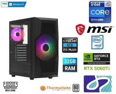 Новый игровой системный блок на базе Intel® Core™ i5 Raptor Lake(Intel® Core™ i5 13400 Up то 4.6/32 GB ram DDR4/Nvidia RTX 5060TI 8Gb/SSD 1000gb NVME PCIE4/600W 80+)+Windows 11 Pro, Гарантия!