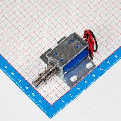 JF-0837ZP-6VDC - электромагнитный соленоид с монтажной планкой (DC 6В÷9В, 0.3А, 0.8N, 10мм, 70х20х26мм) (11006689)